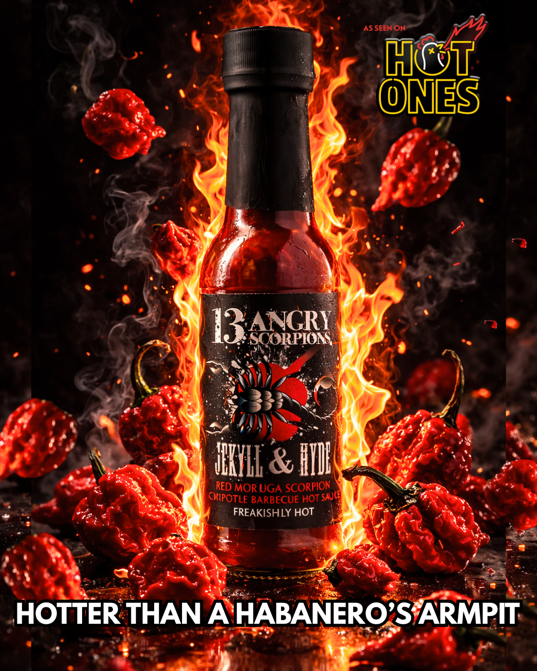 13 Angry Scorpions is recognised internationally as one of the finest boutique sauce producers in the world, that's why over the past 6 years we have won 27 artisan sauce industry awards, including 10 here in Australia and 17 of the most prestigeous awards from across the USA, including; World Champion in Louisiana, 3 medals from Texas, and 1st & 3rd place in the New York City Hot sauce awards. Recently however, we recieved our greatest accolade when our sauce Jekyll & Hyde was selected to star on season 17 of everyone’s favourite hot sauce fueled celebrity interview show, Hot Ones in Brooklyn, New York. An honour reserved for only the best hot sauces in the world.